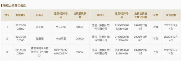 国家企业信用信息公示系统披露,苏宁控股集团股东张近东、张康阳及南京润贤企业管理中心(有限合伙)已将公司全部股权出质给淘宝(中国)软件有限公司。股权出质登记日期为2020年12月4日,合计出质股权数额10亿元人民币,与苏宁控股集团的注册资本金额等同。苏宁方面回应称,股权质押是正常的商业合作,对苏宁易购战略发展和正常经营无实质影响。